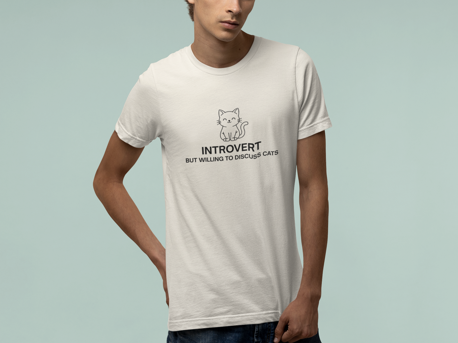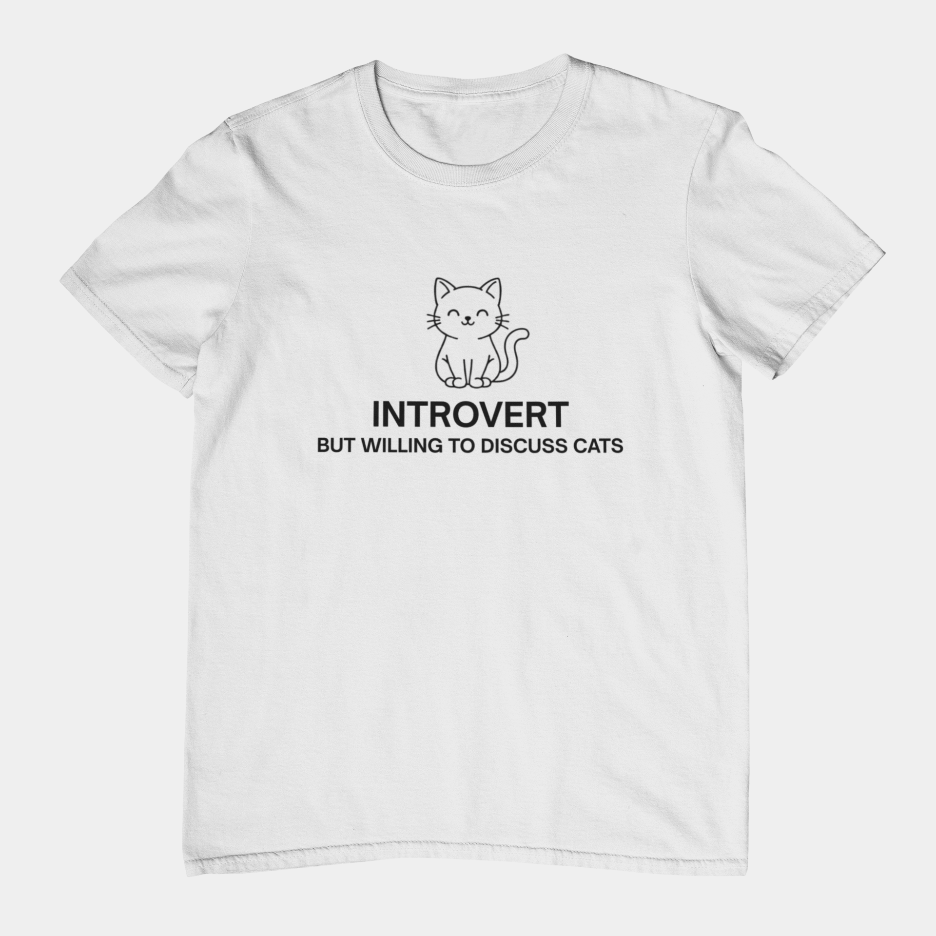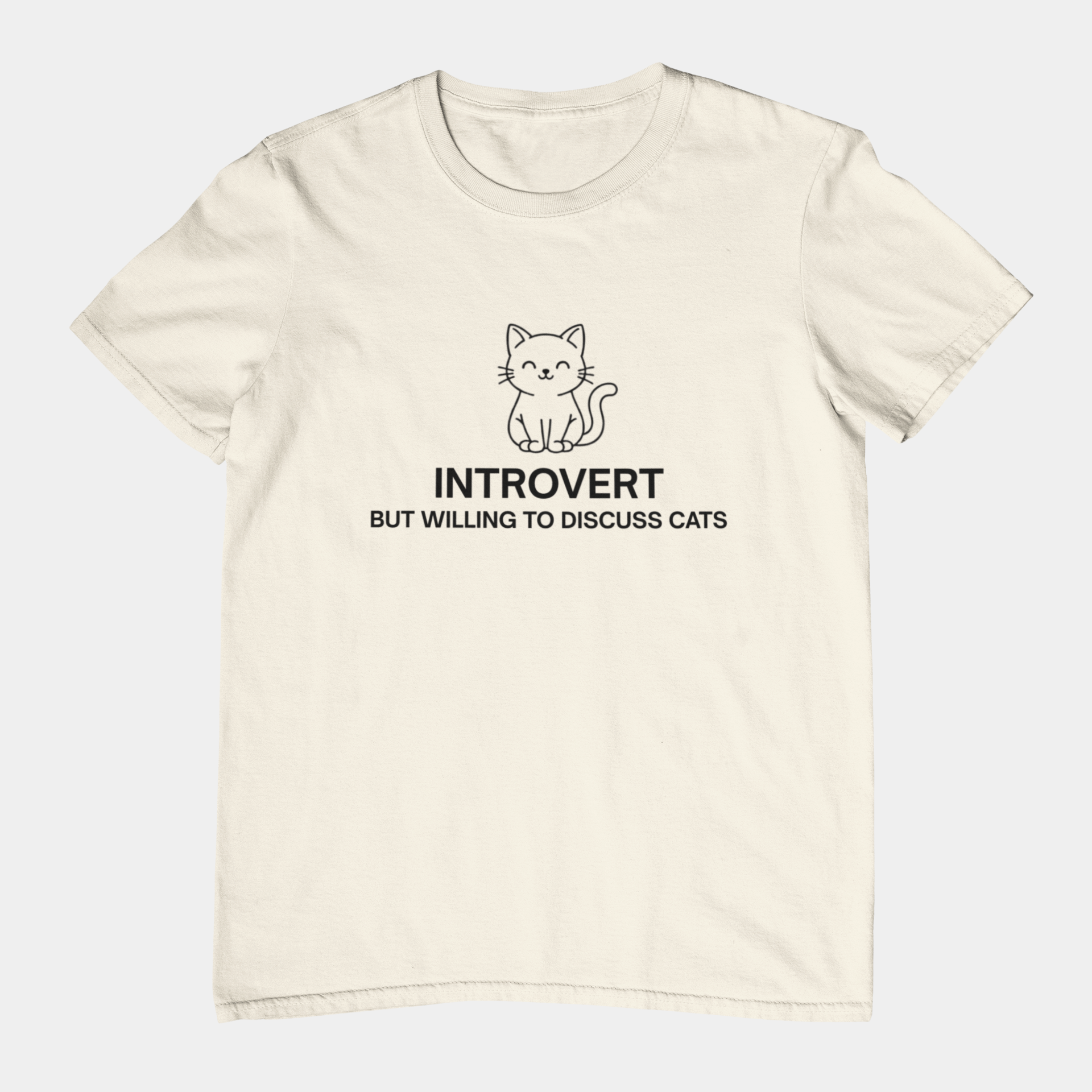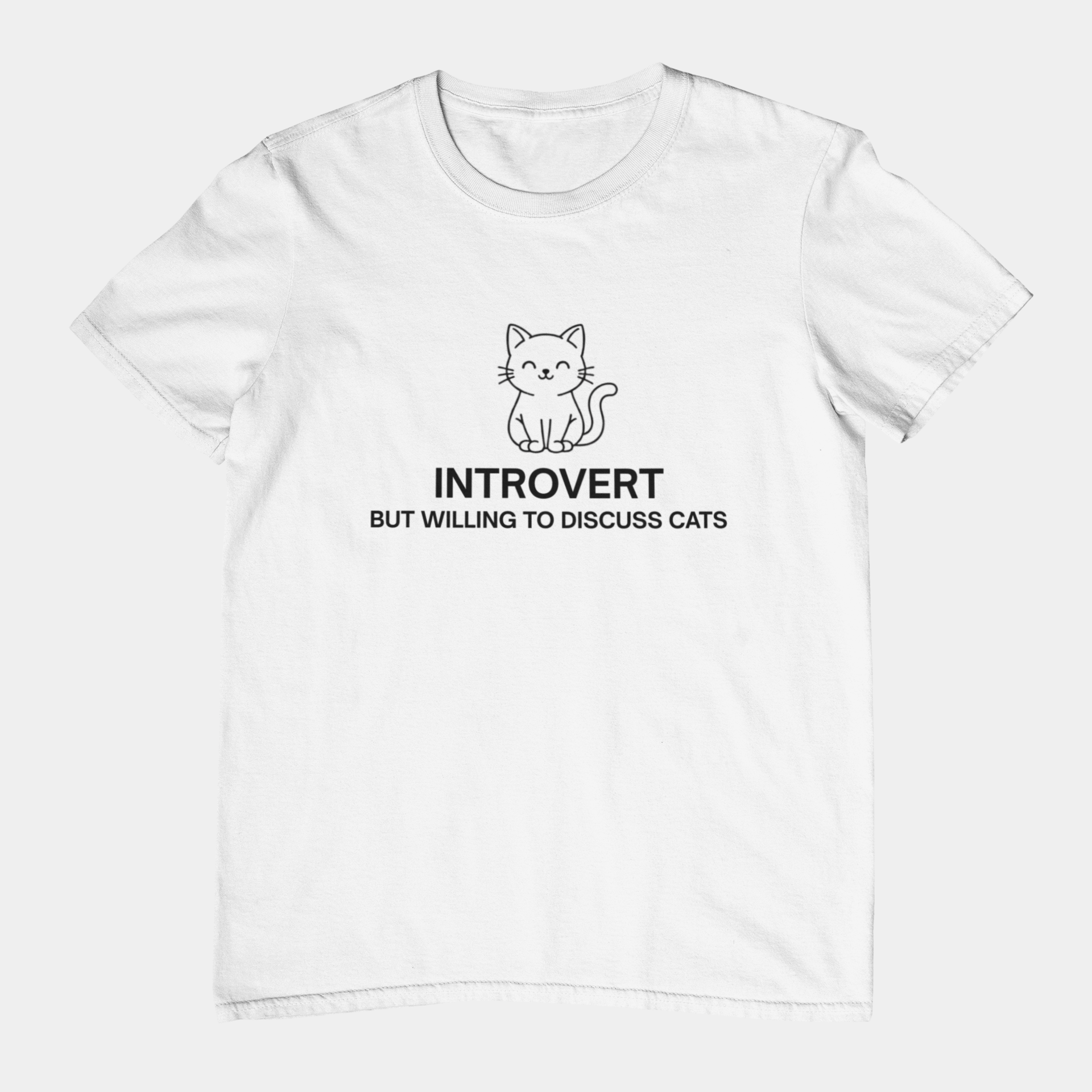 Soft, relatable, and just the right touch of humor — the Introvert But Willing to Discuss Cats Shirt is perfect for anyone who communicates best through shared smiles and cat stories.
