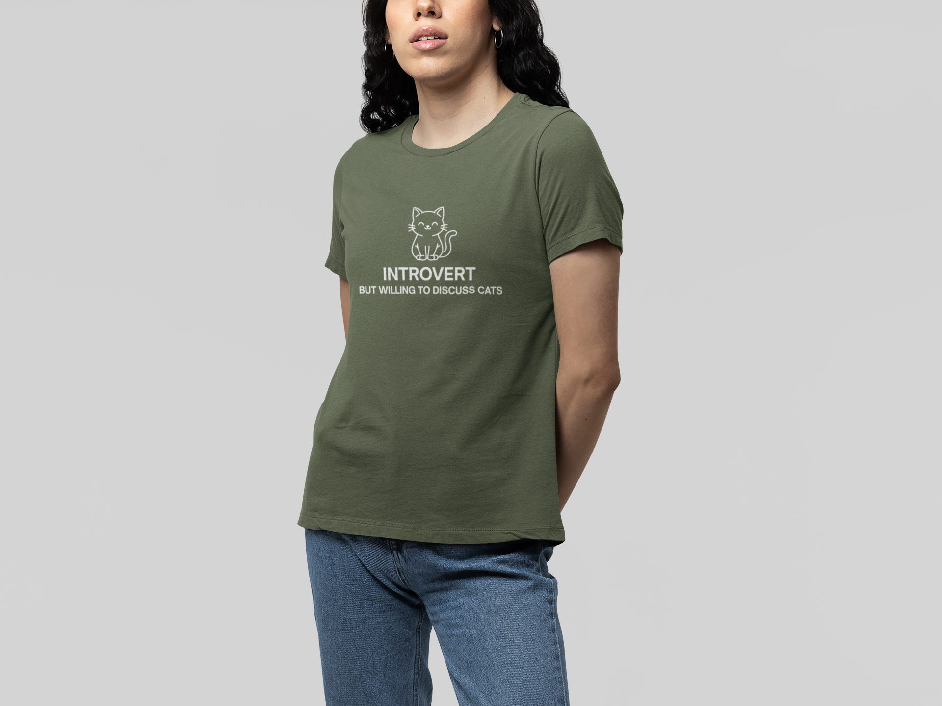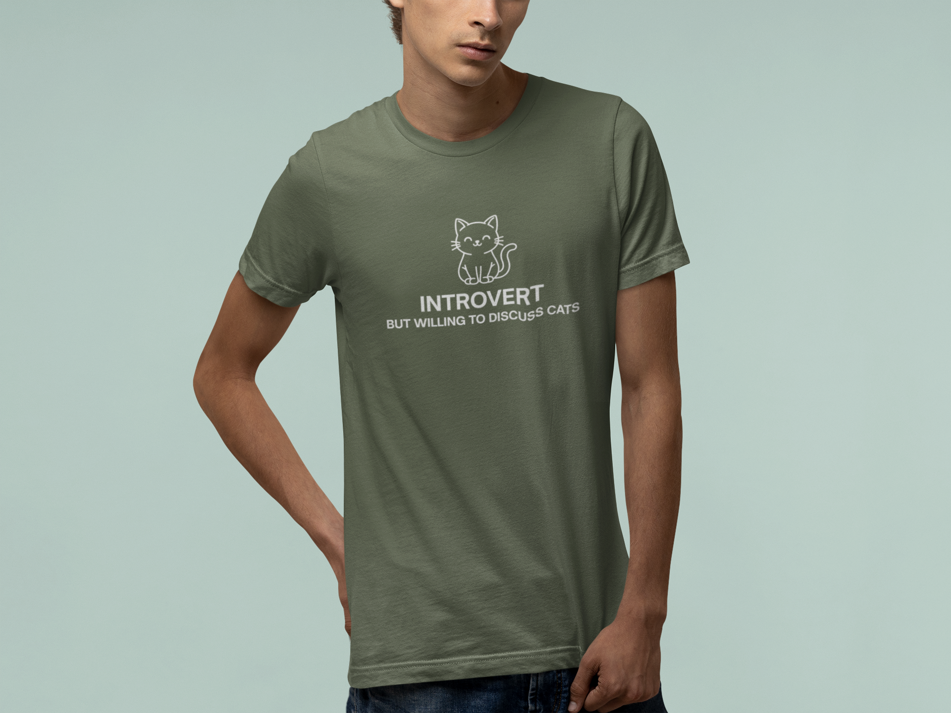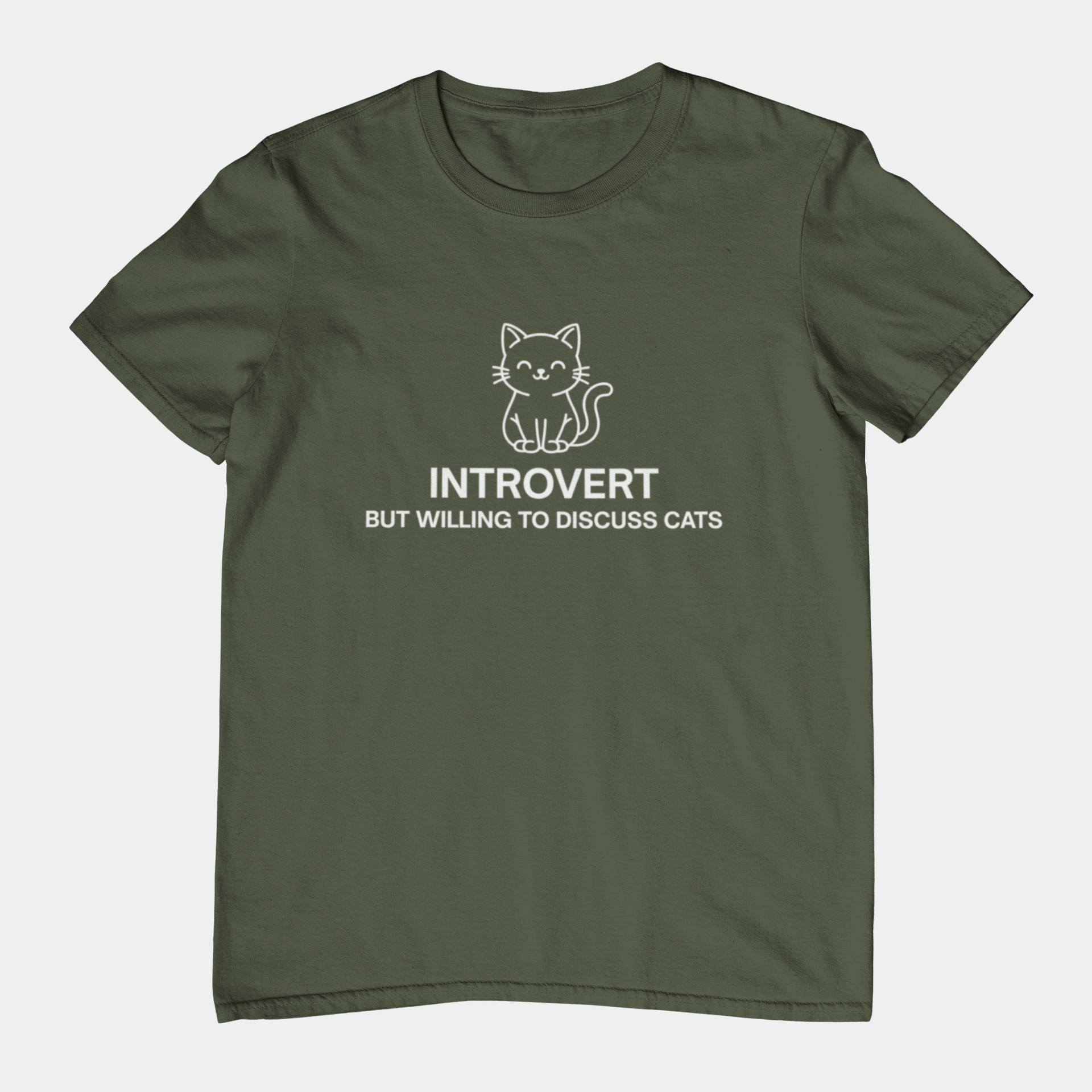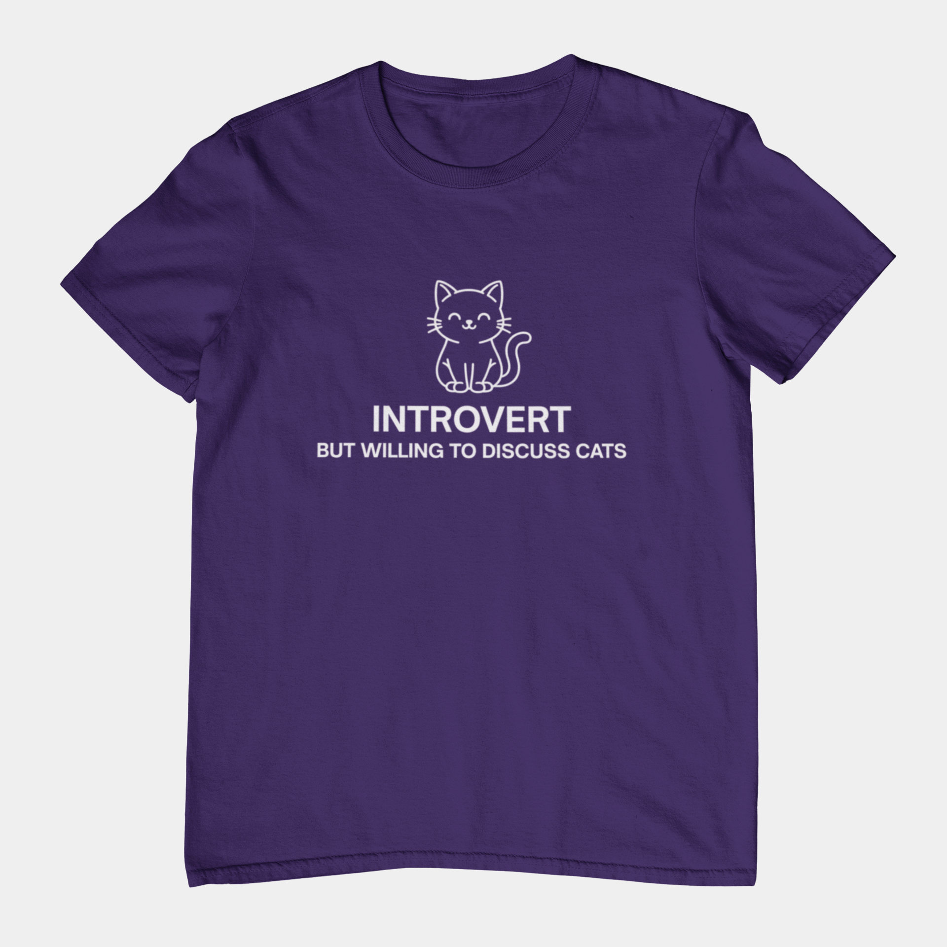 Soft, relatable, and just the right touch of humor — the Introvert But Willing to Discuss Cats Shirt is perfect for anyone who communicates best through shared smiles and cat stories.